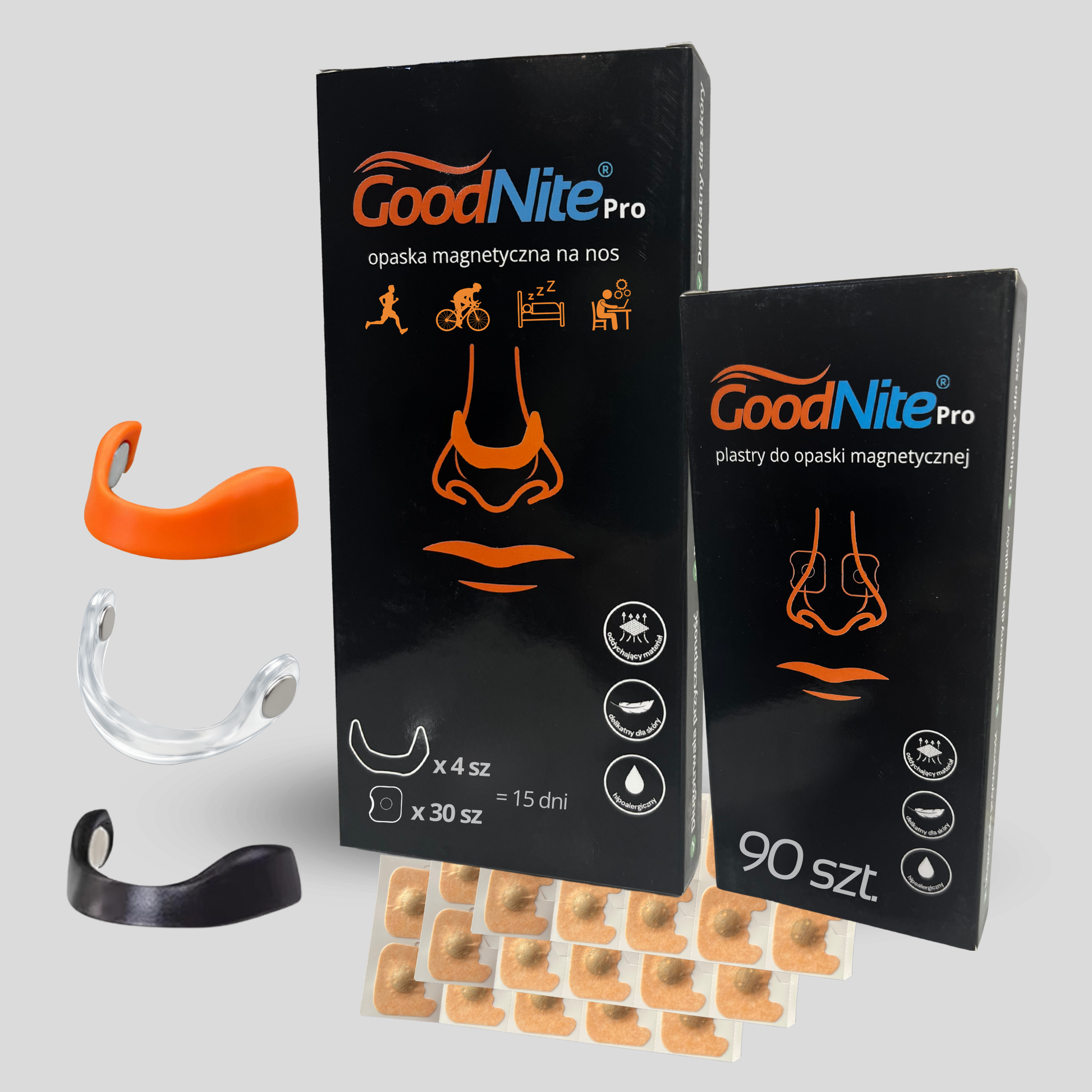 GoodNite Pro to opaska magnetyczna na nos klasy premium, zaprojektowana z myślą o najbardziej wymagających użytkownikach. To więcej niż zwykły „rozszerzacz nosa”– to różnica klas w technologii wspomagania oddychania, gwarantująca rezultaty, których nie osiągniesz z żadnym innym produktem dostępnym na rynku na rynku.